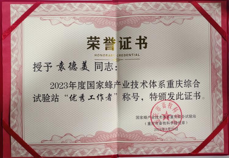 02-11 近日,国家峰产业重庆综合试验站2023年度国家蜂产业技术体系统表彰大会圆满落幕。会上,袁德美同志凭借...
